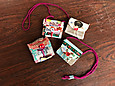 首から下げるために穴をあけて毛糸を通すというアレンジ作品も見られました![]()